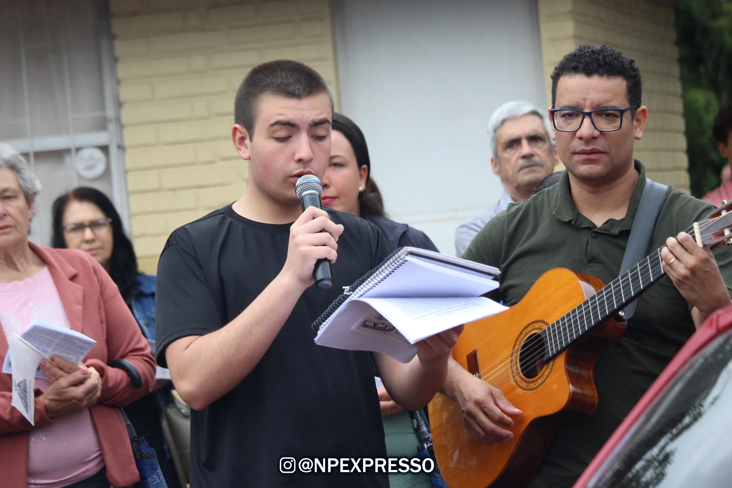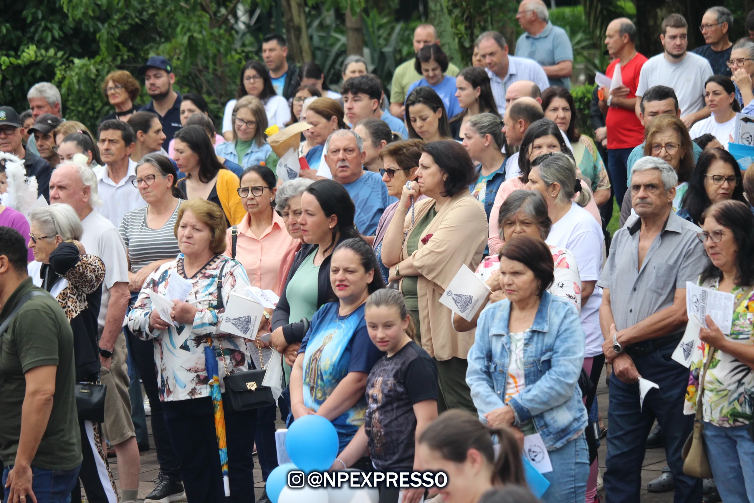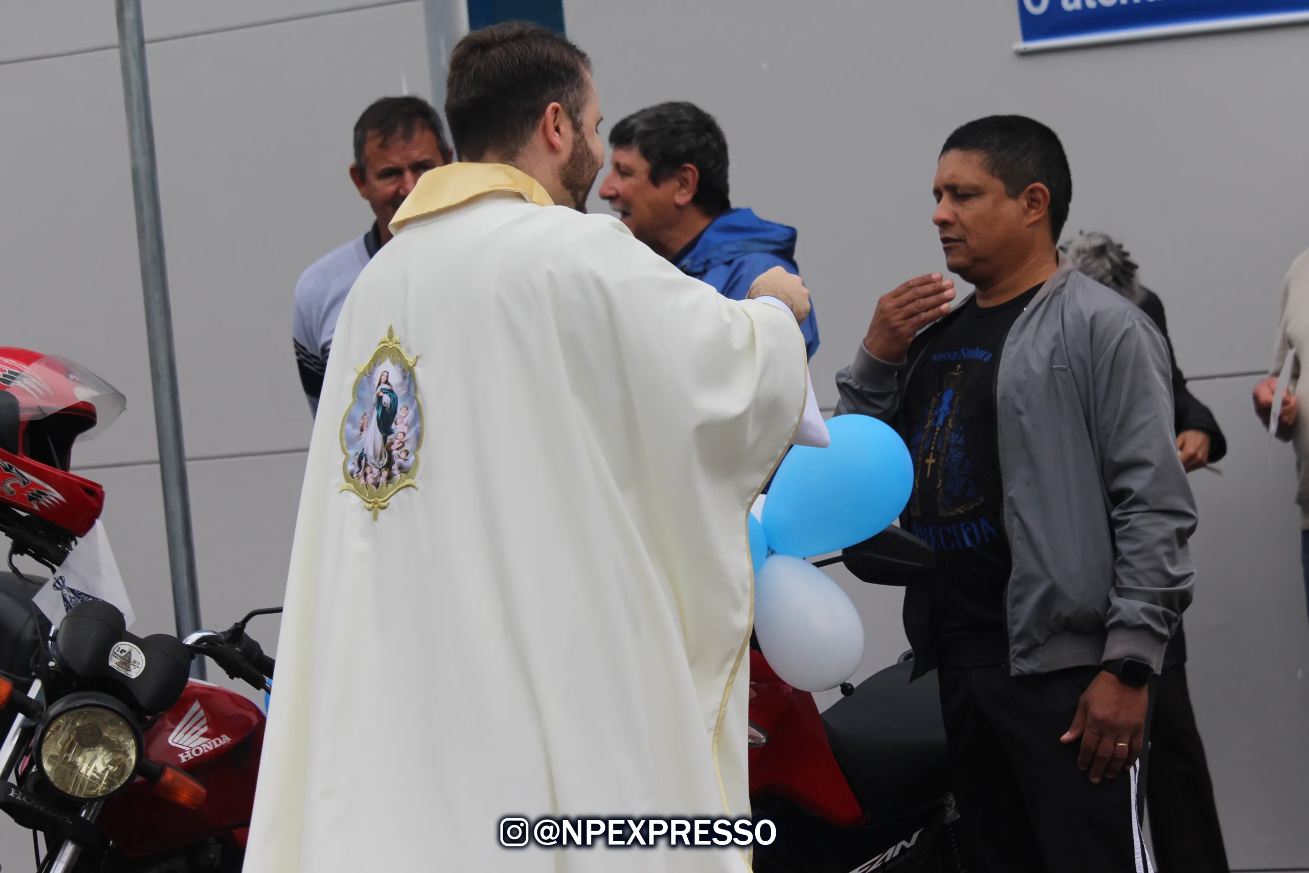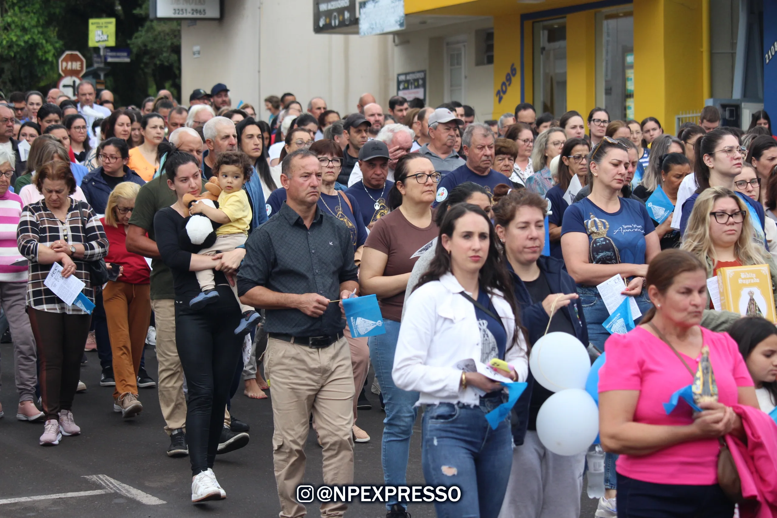 Na sequência, a procissão seguiu a pé da Igreja Matriz até a Capela Nossa Senhora Aparecida, no bairro Santiago Pompeo. A programação no local inclui missa, almoço e festejos populares durante a tarde.
