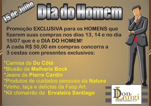 Santiago- Para quem quer fazer as compras de Natal com toda a tranquilidade, a loja Don Luigi está com horários especiais de atendimento para os próximos dias. Neste sábado, atenderá até às 19h; vai funcionar neste domingo, 21, até às 20h; na segunda e terça até às 21h e na quarta, dia 24, até às 19h. A loja tem muitas opções para gosta de se vestir com elegância, oferecendo marcas exclusivas (Sallo, Fido Dido, M.Pollo, Onda Federal e outras.), podendo pagar em quatro vezes sem entrada ou em seis vezes nos cartões. Dê uma passada na Don Luigi e confira. Fica na Rua dos Poetas, 1048. Fone 3251-0090.