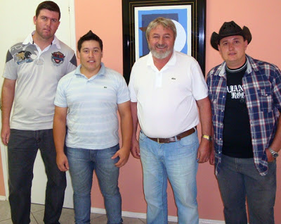 A dupla Douglas e Ademir com o professor Chico. (À esquerda, o grande gaiteiro Gean).