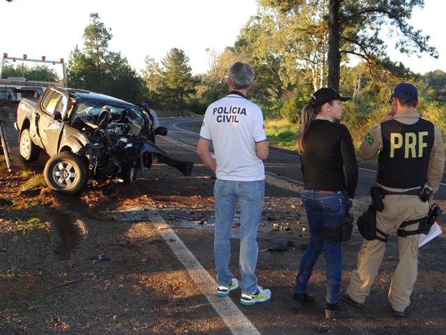 Rogério Edimilson Oliveira dos Santos, 38 anos, e Cecília Salete Andrade de Lima, 55, morreram hoje à tarde na BR 287, Chapadão (Jaguari) quando a camionete saiu da pista e bateu contra um pínus. Ele era natural de Porto Alegre e ela de Erechim. Os outros ocupantes (todos de Porto Alegre) estão hospitalizados. Aline Souza Molina, que dirigia, está em Santiago. Seu estado é grave. Um outro ocupante, o jovem Valdemar Lima (15 anos) foi internado em Jaguari, mas já veio para Santiago para mais exames e passa bem. Eles voltavam de São Borja onde organizaram uma festa no final de semana.