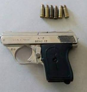calibre 6,35mm, municiada. Eles foram levados à delegacia para o registro do flagrante