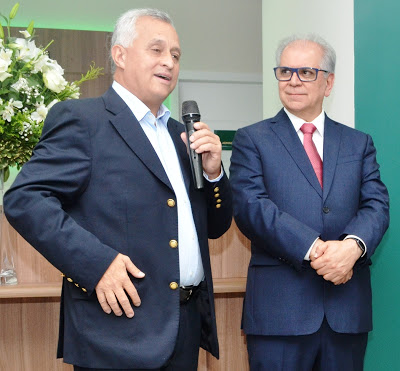 Na abertura havia muitas autoridades. A direção veio em peso. também estava presente o conselheiro do Tribunal de Contas, o ex-deputado Marco Peixoto (foto acima) que fez um belo discurso. Como o prefeito Tiago não estava e nenhum vereador foi convidado a falar, Peixoto disse que falaria em nome do município. E aí foi aquela discurseira…