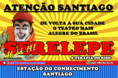 Dentro de alguns dias os fãs do maior teatro e lona do Estado poderão se divertir matando a saudade do palhaço Serelepe e de sua trupe de artistas. O Circo do Serelepe já começa a chegar em Santiago para se instalar no largo da Estação. O teatro de lona vem para mais numa supertemporada depois de andar em todo o Estado. Vá preparando a família para uma nova terapia do riso, a melhor diversão para estas férias.