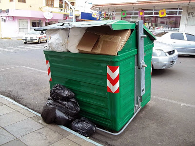 Santiago – Finalmente alguém aprendeu a usar o contêiner, e bota usar nisso! Este fica em frente à rádio Itu (Marechal Deodoro). O pessoal reclama que ele está sempre cheio, pois é usado por moradores do prédio e pelos donos das lojas. (A colaboração é de Leonel Silva).