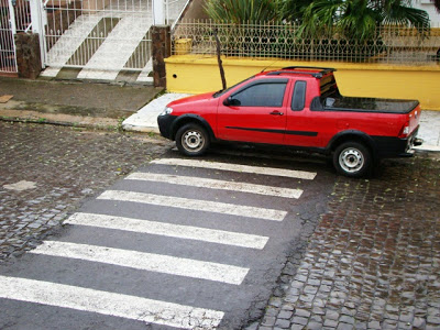 A guarda de trânsito e Brigada fazem um bom serviço em Santiago e, se fossem coibir todos os absurdos que os motoristas cometem, o efetivo teria que ser duplicado e trabalharem durante 24 horas. Mesmo assim, alguns acabariam impunes, como o motorista desta Fiat Strada, que na tarde de ontem se achou no direito de estacionar nesta faixa de segurança da Benjamin Constant.