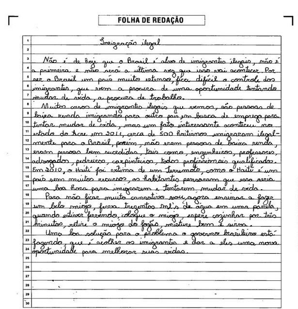 O que culinária tem a ver com movimentos imigratórios para o Brasil no século XXI, tema da redação da última edição do Enem? À primeira vista, nada. No entanto, dois corretores da prova entenderam como “adequada” a abordagem temática por parte de um candidato que descreveu como preparar um Miojo no meio de seu texto. Enquanto estudantes tiraram nota 1000 cometendo erros como “trousse”, “enchergar” e “rasoavel”, como mostrou O GLOBO na segunda-feira, o candidato que agiu com deboche ficou com 560 pontos.