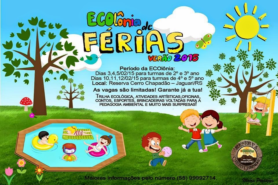 Em fevereiro a reserva Cerro Chapadão promoverá uma colônia de férias para estudantes do 2º ao 5º ano. A ECOlônia será em meio a natureza, num local aprazível e com muito verde, com vivências lúdicas em meio à natureza, ampliando a percepção de ecologia e trabalhando também princípios morais de respeito, união e amizade. As crianças e jovens terão contato direto com a natureza por intermédio de jogos, brincadeiras e vivências voltados para educação ecológica, cooperação e integração.