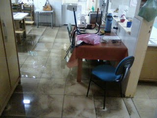 | Água invadiu salas. |