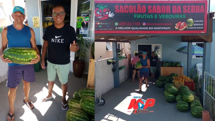 Um cliente assíduo é o senhor Adão Flores, que levou uma melancia para degustar e, ao mesmo tempo, espantar o calor. A fruteira fica na rua João Bastos de Aguiar, 212. Contato: (55) 99133-1149.