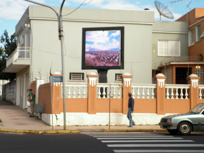 Tem uma novidade no centro de Santiago: a empresa Central LED instalou um painel eletrônico na esquina das ruas Pinheiro Machado e Sete de Setembro. É um telão gigante que funciona como um outdoor fazendo propaganda de empresas locais e inserindo mensagens aos motoristas.