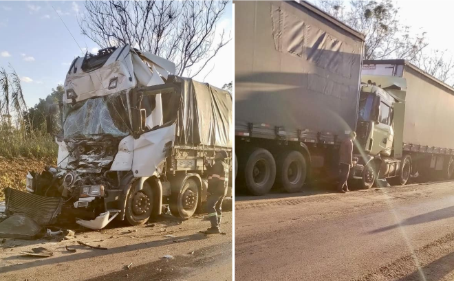 Na imagem, é possível ver o estrago maior na cabine de um dos veículos.