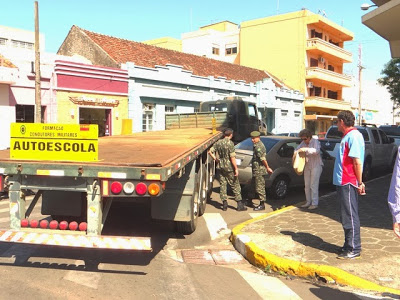 Uma carreta autoescola do Exército se envolveu num acidente na esquina da Pinheiro Machado. Ao dobrar na Benjamin Constant, enganchou num carro estacionado. A polícia irá apontar o culpado pois pela imagem o carro estaria estacionado muito na esquina, sobre a faixa amarela.