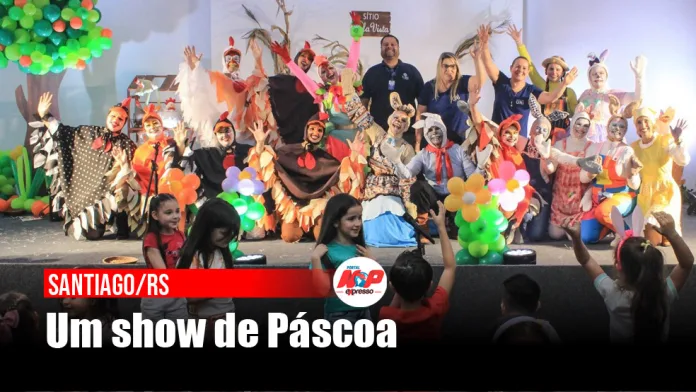 Santiago/RS – Professores da Educação Infantil e dos Anos Iniciais da Escola da URI apresentaram, na noite de 31 de março, um espetáculo que uniu humor, música e reflexão no Salão de Atos. A atividade integrou a culminância do projeto Fábrica de Chocolates, desenvolvido com os alunos por meio de oficinas junto da personagem Dona Coelha.