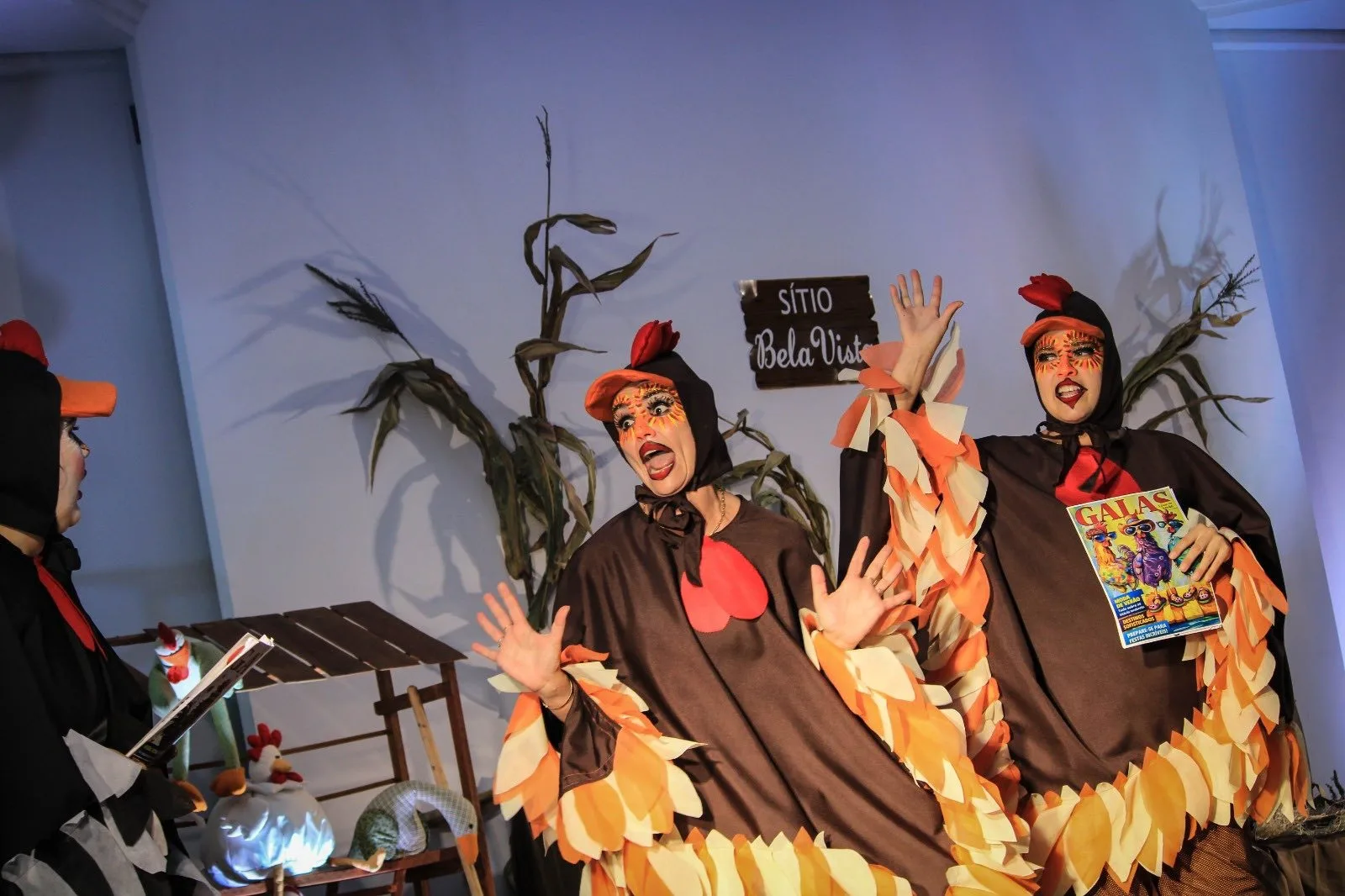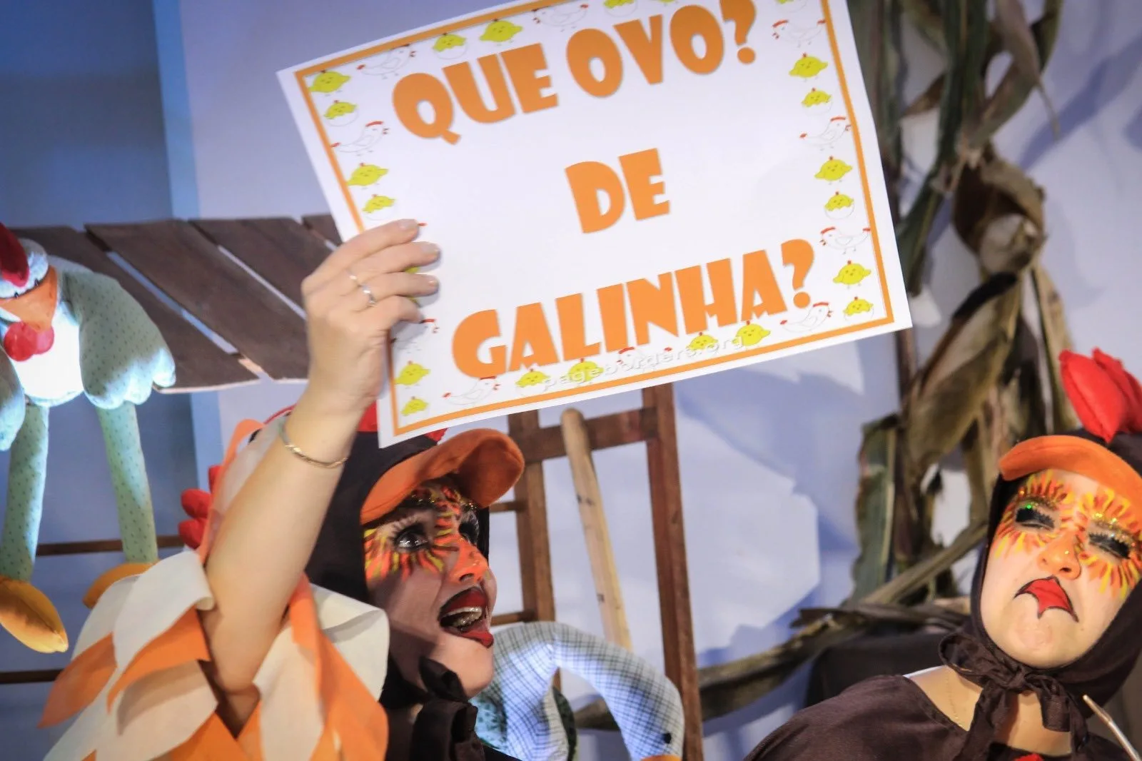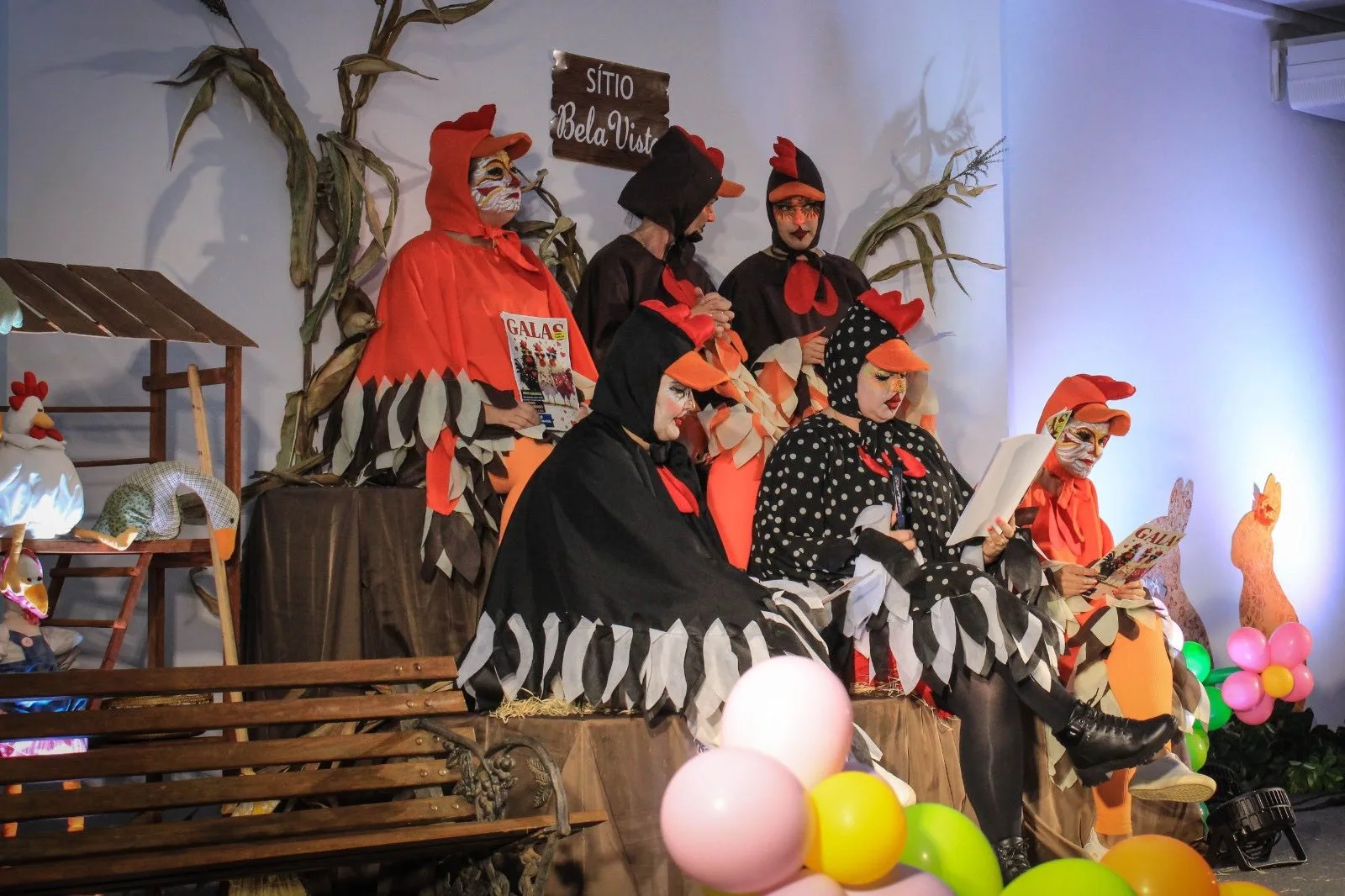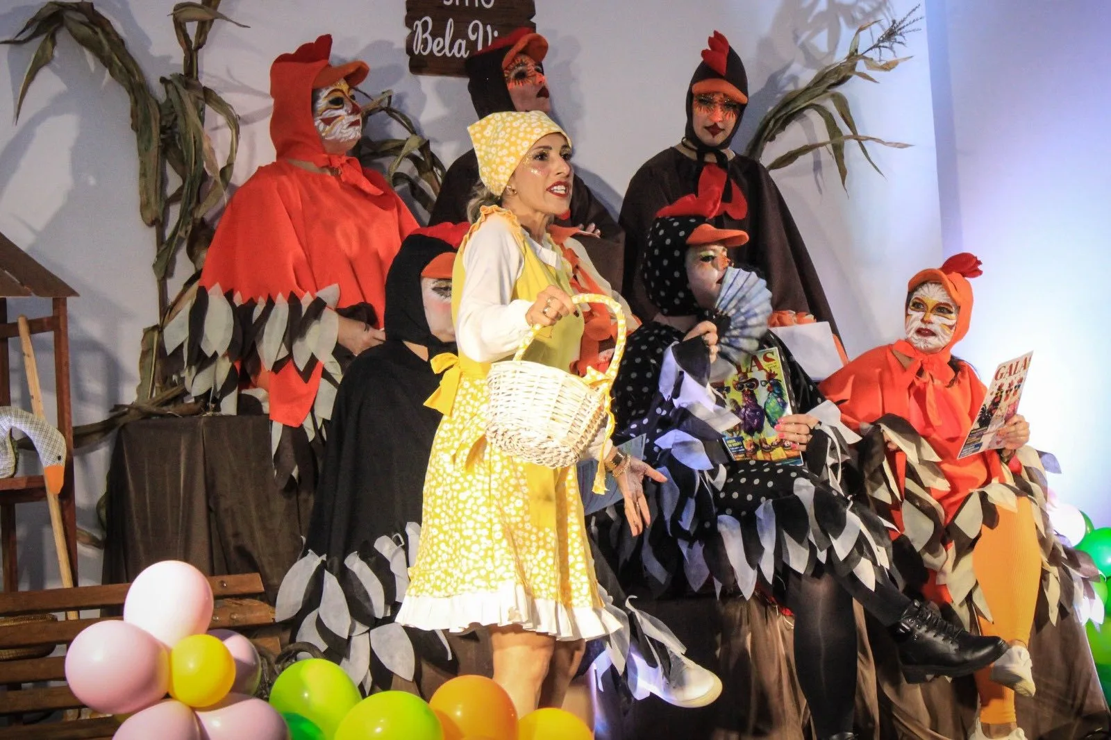 A narrativa apresentou um galinheiro em conflito após a chegada dos coelhos da Páscoa, levando as galinhas a entrarem em “greve” em busca de reconhecimento. De forma leve e divertida, o enredo trouxe reflexões sobre valorização, cooperação e respeito.