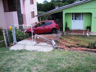 Eram quase 8 horas da manhã do dia 1º quando o motorista deste Ka resolveu desafiar a lei que proíbe bebida e direção. Ele vinha pela Alceu Carvalho, próximo da AABB, e perdeu o controle do carro, invadindo o pátio de uma casa e, por pouco, não colocou a garagem no chão. E o acidente poderia ter sido pior. Na sala da casa, havia gente dormindo. O bafômetro deu positivo e o motorista foi preso em flagrante.