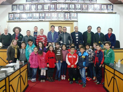 Santiago – Alunos do 4º ano da escola Cândido Genro estiveram na Câmara durante a sessão desta semana. Estavam acompanhados da professora Fabiane, que está trabalhando em sala de aula sobre os poderes federativos. A visita acabou tornando-se uma aula prática para que os mesmos possam trabalhar o tema e aprofundar conhecimentos. Na próxima sessão, 13, será a vez dos estudantes da Heron Ribeiro, dando seguimento ao projeto do vereador Cláudio Cardoso, “Escola no Parlamento”, aproximando as crianças do Legislativo.