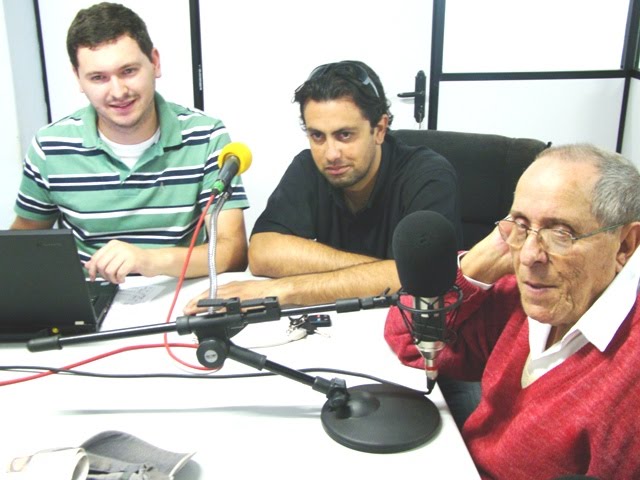 Rafael Nemitz (de verde) foi outro radialista a participar, representando a Verdes Pampas FM e o blogue-site novapauta.com. A seu lado, na foto, Márcio e o famoso Barbela, pessoa que sabe tudo da história do rádio em Santiago. Obrigado a todos.