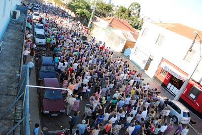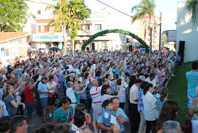 Muita gente participou, sábado, da procissão em honra à Nossa Senhora da Conceição, padroeira de Santiago. A romaria partiu da capela do hospital e após percorrer várias ruas chegou na Igreja Matriz, onde houve missa campal rezada pelo padre Hermeto Mengarda.