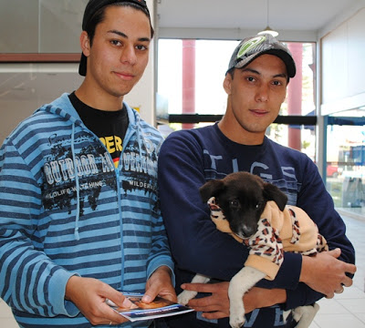Os jovens, Ricardo e João Carlos, levaram um lindo filhote pra casa