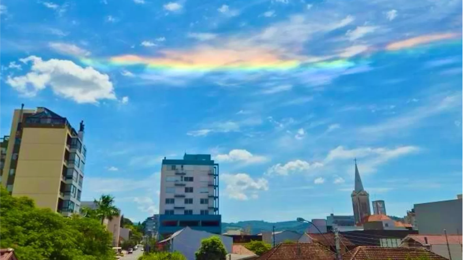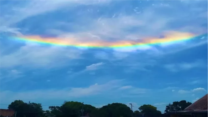 Nesta quinta (23), além das nuvens iridescentes, foi registrado um “arco-íris de fogo”, que, apesar do nome, o fenômeno não tem ligação com fogo, mas é causado pela refração da luz solar em cristais de gelo de nuvens altas e finas, como as Cirrus.