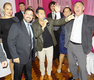 O cantor com seus amigos, dois grandes empresários santiaguenses: Neri Guerra e Diógenes Pohl. A promessa é de que Henrique Dilan volte a Santiago até o final do ano para uma festa “intimista”.