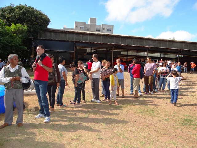 Dezenas de pessoas estão no hortomercado esperando mais um caminhão chegar carregadinho de peixes. O produtor Beto Dani (de Capão do Cipó) já está na estrada e a nova remessa deve chegar após o meio-dia.