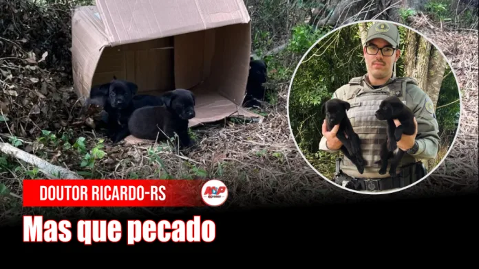 Doutor Ricardo, RS (região de Lajeado) – Quatro filhotes de cães abandonados foram resgatados pela Brigada Militar neste domingo (9), durante o policiamento da tradicional procissão no município, no Vale do Taquari.