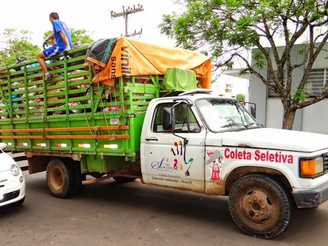 caminhão passa em todos os bairros recolhendo material reciclável. Tadeu