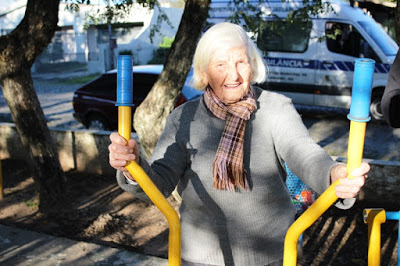 Jaguari – A jaguariense Santa Rigui, 98 anos, é dessas pessoas que sabe levar a vida com jeito. A idosa mostra viver com disposição e bom humor é o melhor remédio para chegar perto dos 100. Mesmo com a idade avançada, frequenta a academia de rua no mínimo quatro vezes na semana e em casa, mantém uma rotina agitada. Cuida da horta, faz doces e se responsabiliza pelos afazeres domésticos. Se deixar, corta até lenha. Quando questionada se a rotina cansa, dona Santa nega e mantém o bom humor. “Faço porque gosto de me movimentar; se cansa, eu não sei”, conta. A jaguariense tem 11 filhos, 25 netos, 17 bisnetos e dois tataranetos. Seu único problema é a audição, porque não gosta de usar o aparelho.