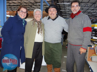 A médica santo-angelense Rose Martins (ela atende em santiago na área da beleza); sua mãe e o marido Tadeu Martins (poeta assisense). Ao centro, o gaiteiro santa-mariense Sérgio Rosa.