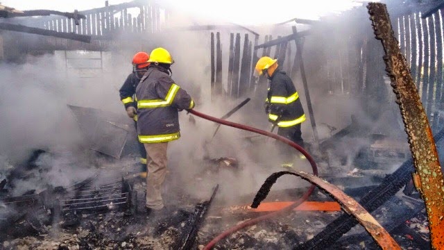 tiveram trabalho para apagar um incêndio numa casa de madeira na Hipólito