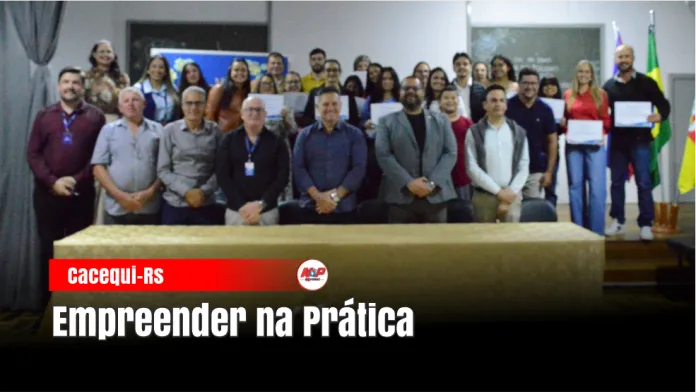 Cacequi – RS – (Região de Santiago) – Alunos que participaram do curso Empreender na Prática receberam o certificado de conclusão em uma cerimônia no auditório da Escola Municipal Deborah Krebs Conceição. O encontro juntou familiares, autoridades e parceiros do projeto.
