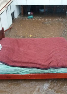 As fotos acima são da santiaguense Lidiane Batista, na rua Centenário. Sua casa foi invadida pela água e o barro.