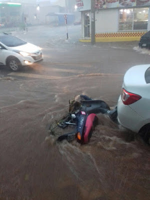 Em época de calor, toda a chuva é boa, desde que não traga vento ou pedra. A de agora há pouco deixou algumas ruas alagadas como mostra a foto da Bento Gonçalves, na quadra da academia Sigma, onde as bocas-de-lobo não deram vencimento a vazão. Até o contêiner foi parar no meio da rua com a força da água. Quase todos os dias tem chovido e, conforme a previsão, o resto da semana terá pancadas todos os dias. Várias casas em diversos bairros ficaram alagadas. A equipe do Expresso foi em algumas delas. Acompanhe em expressoilustrado.com.br