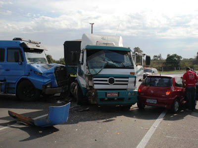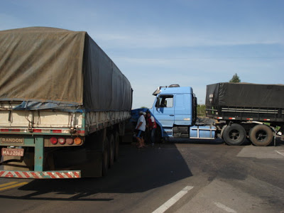 Hoje à tarde houve outro acidente no trevo de São Vicente (15 horas), na BR 287, entre duas carretas e um carro (de Mata). Apenas uma pessoa ficou ferida sem gravidade e já foi socorrida. A Polícia Rodoviária esteve no local e o trânsito ficou interrompido, mas por pouco tempo. Os veículos acidentados foram levados ao depósito em São Vicente.