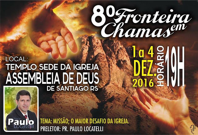 Santiago – O 8º Congresso Regional de Evangelismo e Missões , o maior evento religioso da região, será de 1º a 4 de dezembro no templo sede da igreja Assembleia de Deus e terá a participação de muitos lideres religiosos. O evento já é tradicional e atrai pessoas de toda a região.