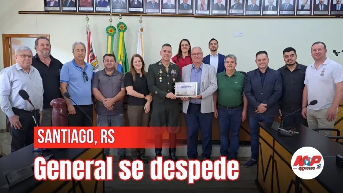 Santiago, RS – A Câmara promove na manhã desta sexta (28) uma sessão solene em homenagem ao general de brigada Carlos Alberto Moutinho Vaz, que está deixando o comando da 1ª Brigada de Cavalaria Mecanizada. A iniciativa visa reconhecer os relevantes serviços prestados pelo general Vaz à região.