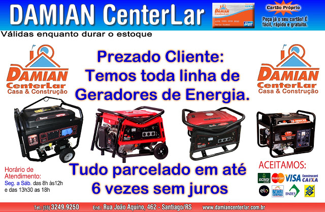 Geral InícioGeral Geradores em até 6 vezes no Damian Center Lar Publicado em 31/10/2017 POR NP Expresso FacebookTwitterWhatsAppLinkedinTelegram DEIXE UMA RESPOSTA Cancelar resposta Comentário: Por favor digite seu comentário! Nome:* Por favor, digite seu nome aqui E-mail:* Você digitou um endereço de e-mail incorreto! Por favor, digite seu endereço de e-mail aqui Site: Salve meu nome, e-mail e site neste navegador para a próxima vez que eu comentar. Siga o NP Expresso 184.758 132,618FãsCurtir 73,451SeguidoresSeguir Notícias Recentes Estado Produtores conseguem suspender cobrança de royalties da soja São Vicente do Sul, RS - Três produtores rurais conseguiram na Justiça suspender a... 24/03/2026 Nacional Jovem esfaqueia namorado e diz que agiu em legítima defesa Maceió, Alagoas - Bia Correia, de 21 anos, feriu o namorado, de 22, com... 24/03/2026 Geral Projeto Taifa descobre novos talentos da música Santiago - RS - (Região do Vale do Jaguari) - O sonho de transformar... 24/03/2026 Geral Mentoria com Quésia Vieira no Chuva de Ideias na reta final de inscrições Santiago, RS - A mentora Quésia Vieira será a responsável por conduzir a próxima... 24/03/2026 Leia Também Estado Produtores conseguem suspender cobrança de royalties da soja São Vicente do Sul, RS - Três produtores rurais conseguiram na Justiça suspender a... 24/03/2026 Nacional Jovem esfaqueia namorado e diz que agiu em legítima defesa Maceió, Alagoas - Bia Correia, de 21 anos, feriu o namorado, de 22, com... 24/03/2026 Geral Projeto Taifa descobre novos talentos da música Santiago - RS - (Região do Vale do Jaguari) - O sonho de transformar... 24/03/2026 VER TODAS AS NOTÍCIAS