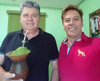 Aí está um grande empresário, pessoa que não pensa só na sua empresa, mas no município. Darci Antunes é um dos apoiadores da festa de aniversário de Santiago. Todo o palco será custeado pela sua ervateira, a São Gabriel. Todos nós lhe agradecemos. (Foto, Darci e João Lemes)