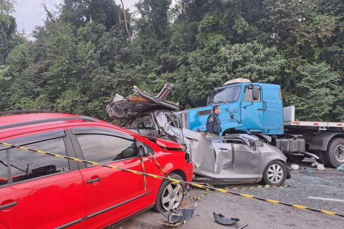 O acidente ocorreu na manhã desta quarta (21) na BR-116 envolvendo três carros, uma moto e um caminhão. A carreta seguia no sentido Capital-Interior e precisou desviar de um ciclista e invadiu a pista contrária, colidindo frontalmente com um Honda Fit. Após a colisão inicial, houve também a colisão da moto, uma SpaceFox e um Renault Clio. Duas pessoas morreram; o motorista do Honda Fit e o condutor da moto. Outras três pessoas foram atendidas sem gravidade.