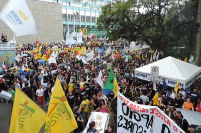 Escolas: A orientação do Cpers era para que todas as escolas fechassem. Em Santiago e região a greve é quase total (Escola Vila Branca não parou). As municipais e particulares seguem normalmente.