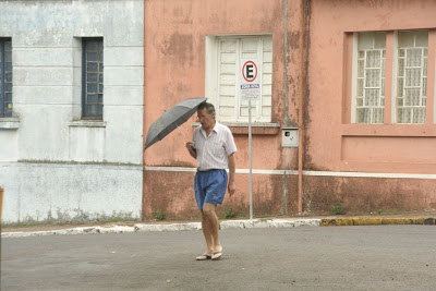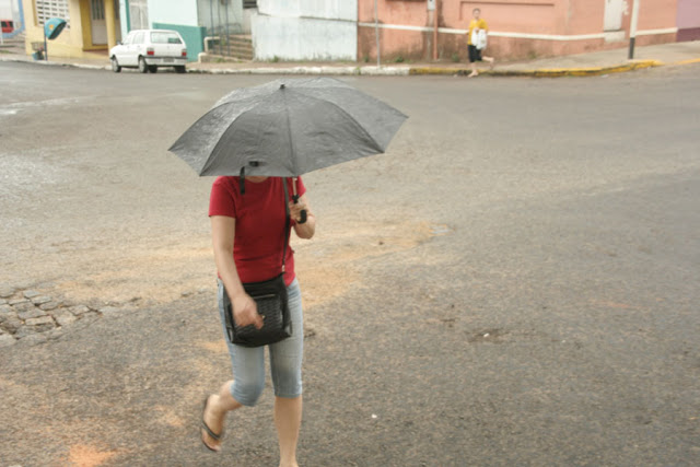 Depois de semanas de muito sol e sol e sol, a chuva começa a aparecer na região. Ainda que tímida, sem molhar muito, ela chega bem-vinda e todos esperam que ela apareça com mais força para diminuir os efeitos da estiagem. Como muitos não apostavam que pudesse chover, foram poucas as pessoas que saíram com seus guarda-chuvas, objeto que esteve bastante ausente das ruas nas últimas semanas.