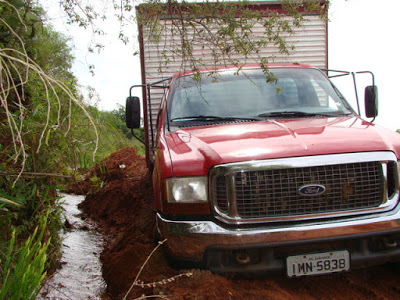 São Chico – Com as últimas chuvas, a estrada de acesso ao Passo do Leão cedeu, abrindo um barrocão ao lado. A prefeitura colocou terra pra tentar consertar, mas com as novas chuvas a pista ficou escorregadia e aí… Na manhã de terça este motorista de Santiago saiu da estrada e atolou na sarjeta. O local que dá cesso à cidade ficou interditado por duas horas.