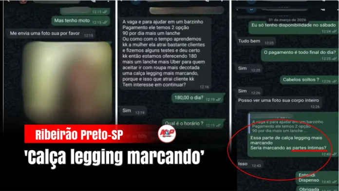 Ribeirão Preto – SP – Uma jovem de 23 anos denunciou uma hamburgueria após receber proposta de trabalho com exigência de roupa justa. Ela contou que o recrutador pediu “calça legging mais marcando”, dizendo que isso atrairia clientes. A candidata recusou a vaga e disse que se sentiu desrespeitada.