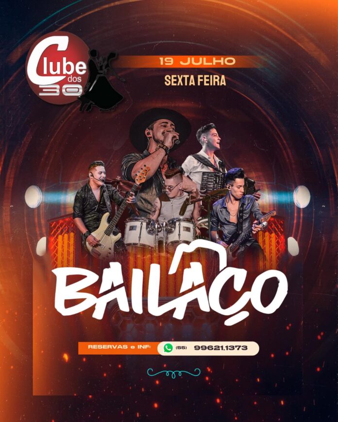 Santiago – O Clube dos Trinta prepara-se para receber nesta sexta (19) o Grupo Bailaço, a grande sensação do momento musical, em uma festa épica que promete lotar a casa mais uma vez.