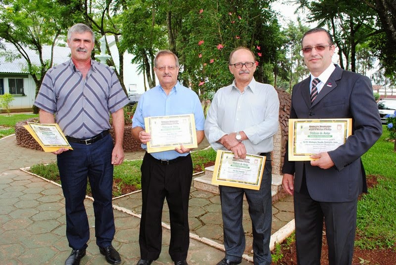 Na foto, os homenageados: Hélvio Boff, Roger Roos, José Campanher e Waschington Brandão.