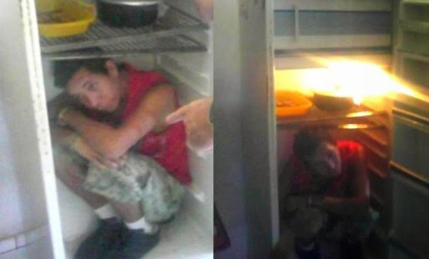 A Polícia Civil se surpreendeu ao procurar um foragido do Instituto Penal. Após uma denúncia anônima, o jovem foi encontrado na casa de parentes no bairro Tancredo Neves, escondido dentro de uma geladeira. Segundo o delegado Bruno Oliveira, da 2ª Delegacia de Polícia de Ijuí, Amilton Ferreira Boavas, 21 anos, estava tremendo de frio.