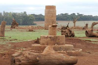 A seca que atinge o Estado há seis meses revelou as ruínas de uma antiga vila que há mais de 40 anos esta aembiaxo d’água em XV de Novembro, perto de Cruz Alta. Hospital, frigorífico, fábrica, lojas e muitas casas desapareceram debaixo da água em 1971, quando foi construída a barragem do Passo Real, na época divisa dos municípios de Cruz Alta e Ibirubá.