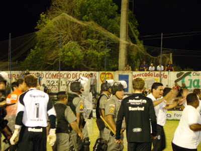 entrar em campo para acabar com a confusão inicia pelos jogadores do Grêmio.