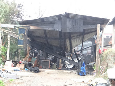 fundos de uma casa na rua José Antônio Moura  pegou fogo. Uma moto e a máquina de lavar